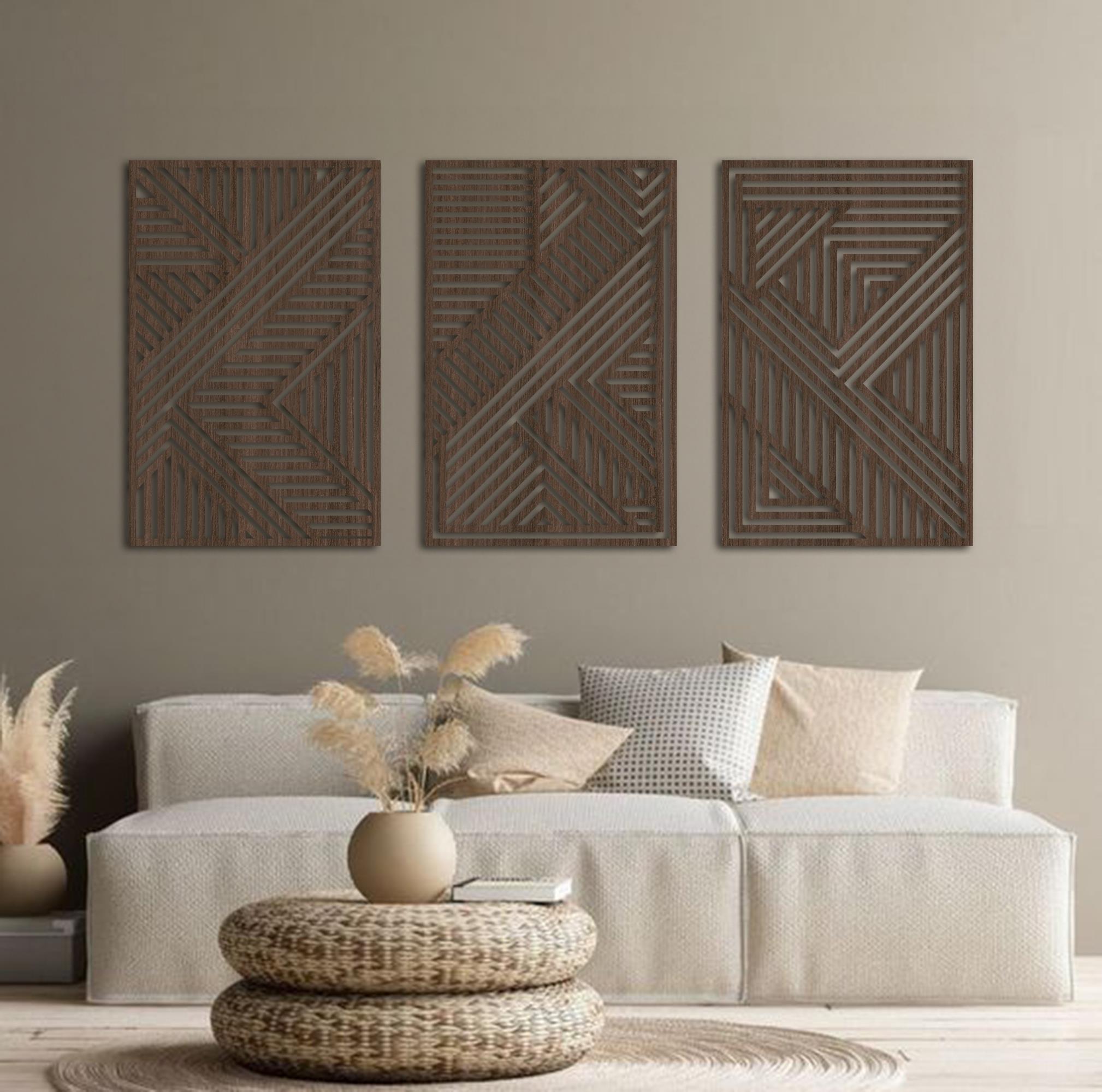 MODERN ESTETİK TASARIM: Geometrik soyutlamanın sofistike cazibesiyle mekanınızı dönüştürün. Özenle tasarlanmış bu üç panel, cesur çizgileri ve formları sergileyerek her iç mekana modern ve zarif bir dokunuş katıyor.