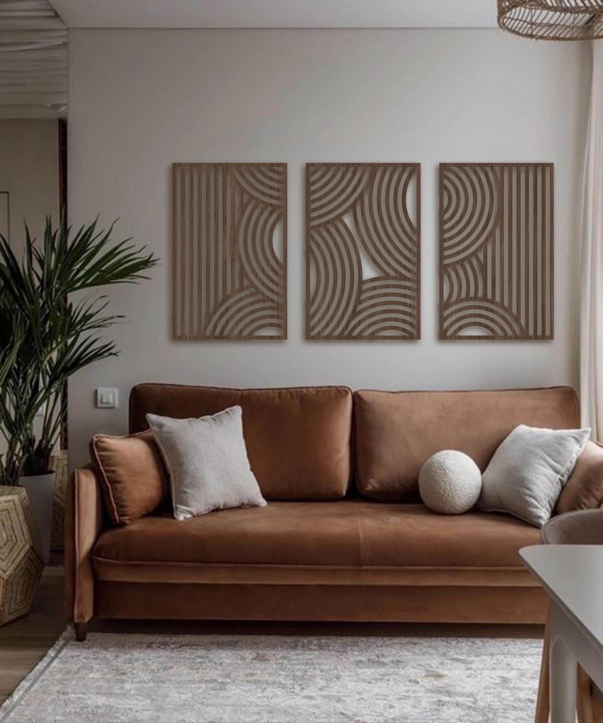 MODERN ESTETİK TASARIM: Geometrik soyutlamanın sofistike cazibesiyle mekanınızı dönüştürün. Özenle tasarlanmış bu üç panel, cesur çizgileri ve formları sergileyerek her iç mekana modern ve zarif bir dokunuş katıyor.