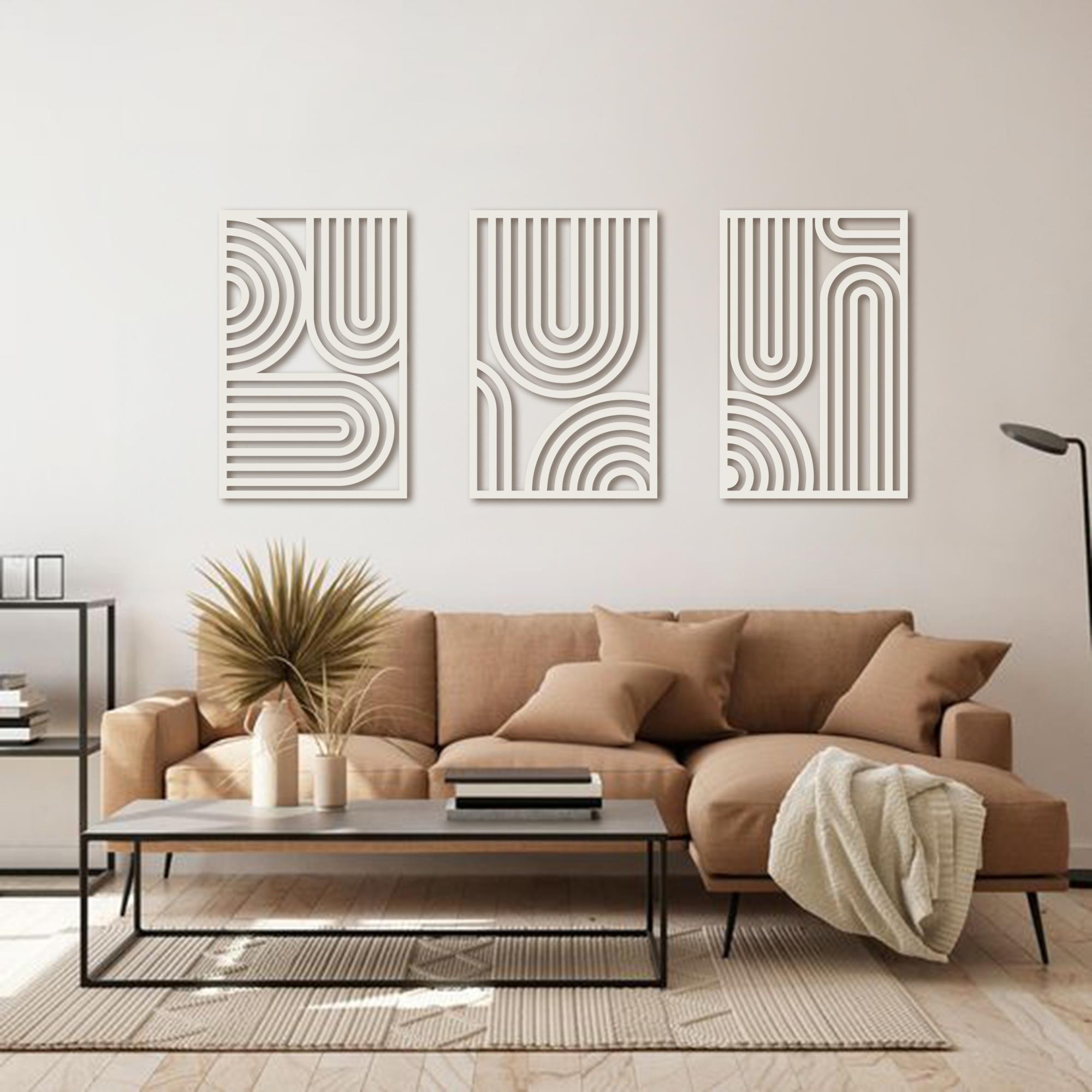 MODERN ESTETİK TASARIM: Geometrik soyutlamanın sofistike cazibesiyle mekanınızı dönüştürün. Özenle tasarlanmış bu üç panel, cesur çizgileri ve formları sergileyerek her iç mekana modern ve zarif bir dokunuş katıyor.