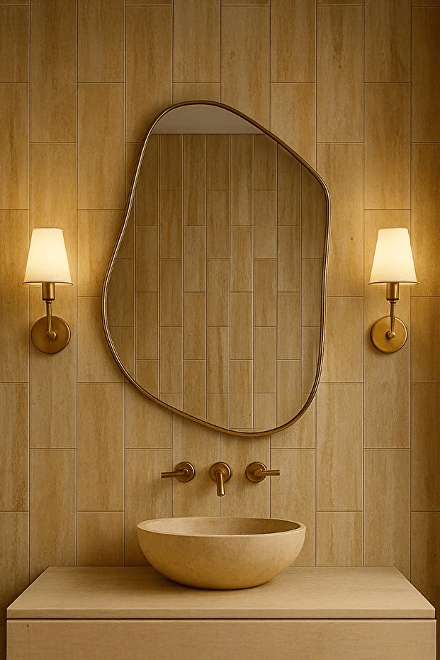 Fawdecor Premium Şık Asimetrik Ahşap Çerçeveli Duvar Banyo Hol Aynası