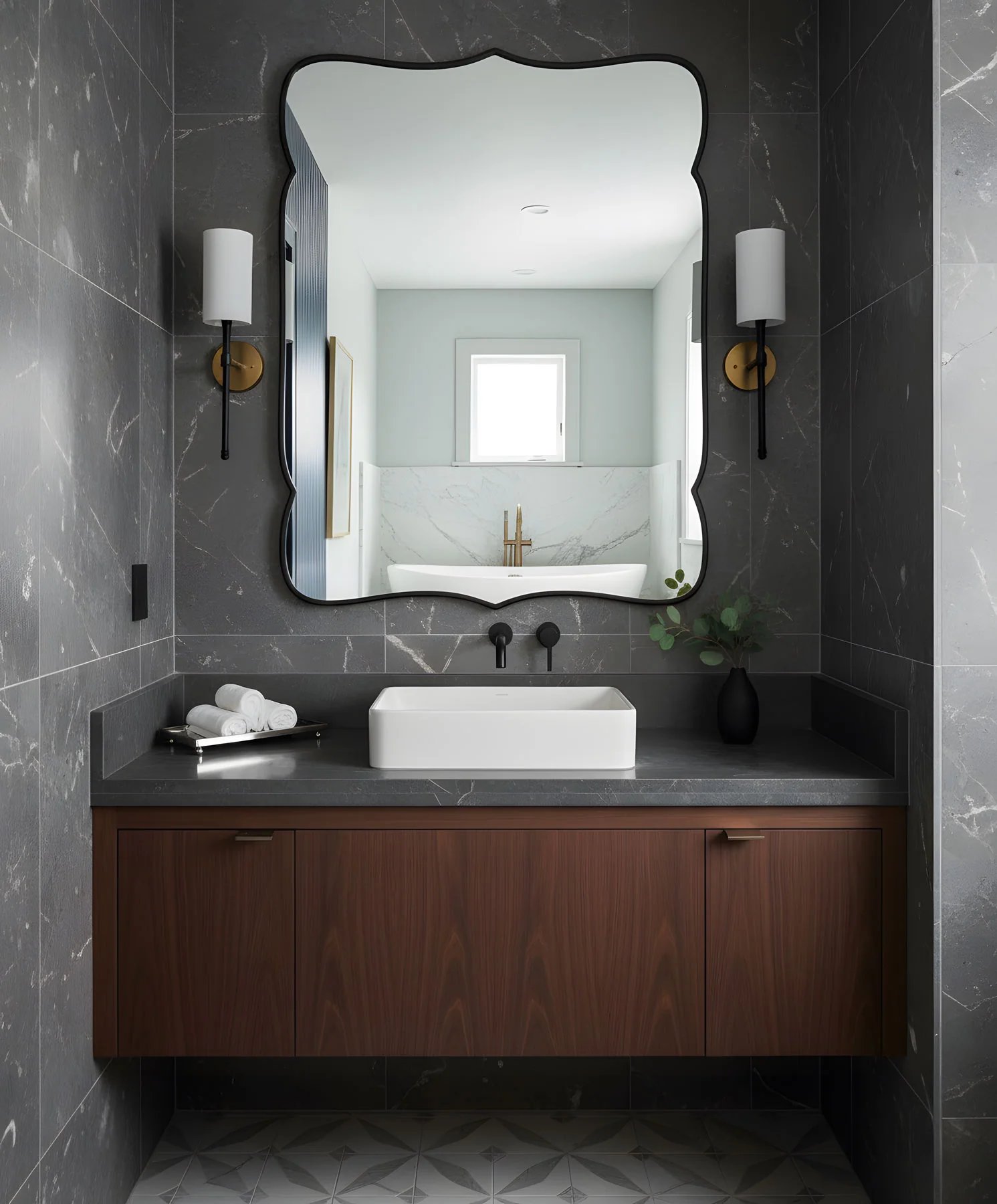 Premium Şık Ahşap Çerçeveli Asimetrik Ayna Ev Dekoru Estetik Duvar Aynası Banyo Aynası Pirinç